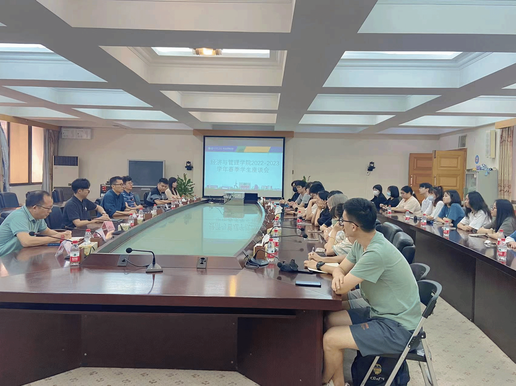 为加强我校本科生日常教学管理和质量监控,促进教学改革,及时发现和处理教学环节中存在的问题,提高本科教学质量。4月20日,经济与管理学院春季学生座谈会于4315会议室顺利召开。本次座谈会由黎伟副院长主持,金凤花、李蓬实、张林云、范鹏、张新建、陈永栓、宋忆宁老师与各专业学生代表参与。座谈会上,学生代表就课外实践学分、毕业实习、就业问题、教学系统、教学条件等方面提出了相关疑问,与会教师详细解答了学生代表所提出的问题,并针对不同问题给予了指导性的建议。