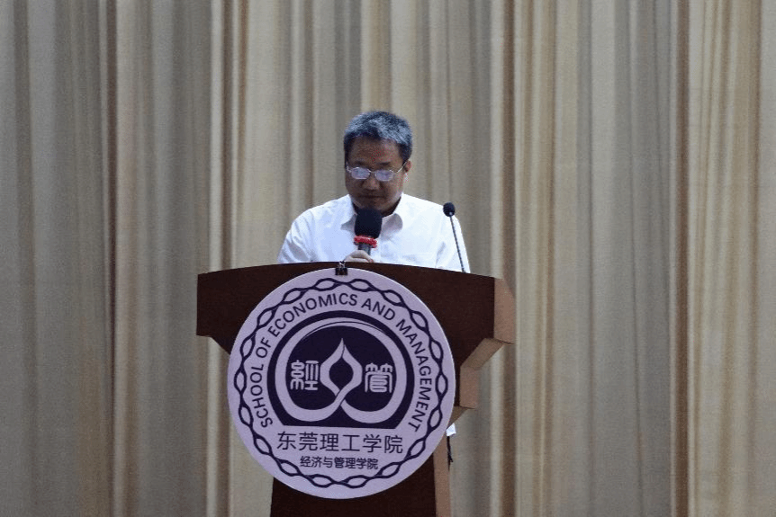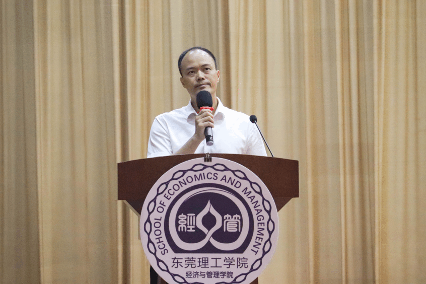 随后,刘川副院长上台致辞,他由衷祝贺同学们加入到经管大家庭当中,随及围绕着东莞以及我校当下发展,鼓励经管新生学子努力拼搏,奋发向前,成为“出彩经管人”,在实现民族伟大复兴的赛道上奋勇争先。