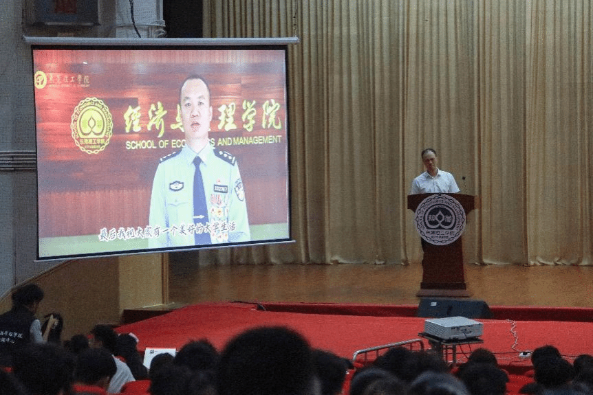 下一议程,全国优秀人民警察、2009级工商管理专业毕业生王真以视频的形式作校友代表发言。王真提到,他感谢经济与管理学院给予他的栽培,并积极引导23级新生学子向上向善,努力学习扎稳脚跟,未来以更优秀的姿态为国家发展注入新生活力。