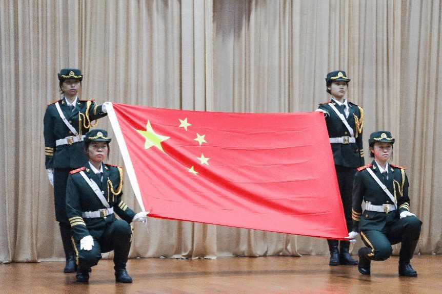 会议伊始,由校国旗护卫队护送国旗入场,全体起立奏唱中华人民共和国国歌。