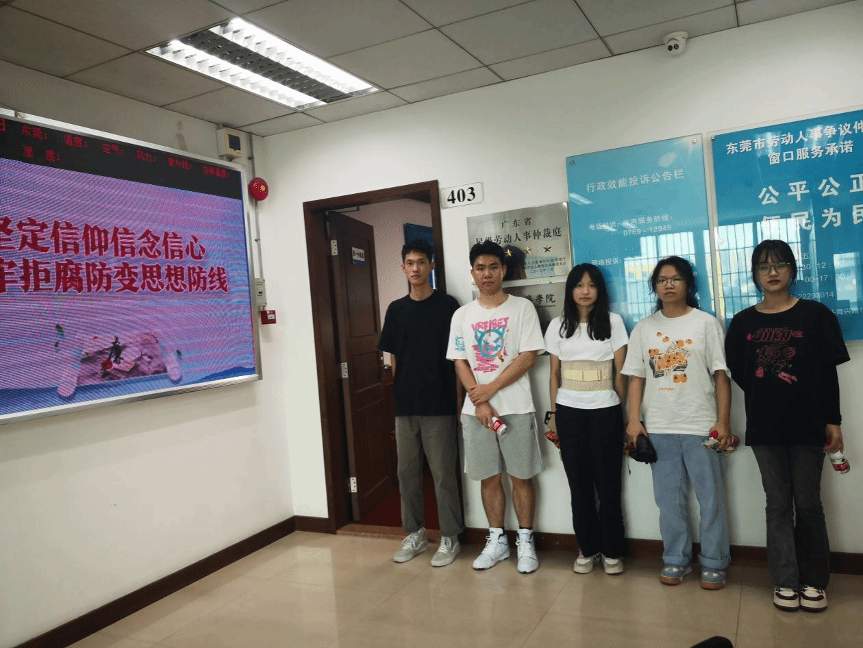 2023年9月5日下午,yl88858永利集团2022级和2021级人力资源管理专业的陈铮等5位同学在经管学院工商管理系人力资源管理专业程守红老师的带领下,再次走进东莞市劳动人事争议仲裁院的仲裁庭,零距离观摩真实劳动人事争议仲裁庭审全过程,亲身感受公正严肃的仲裁庭审现场,了解劳动争议案件处理全流程,在观摩实践中深化课程所学劳动法律法规知识应用。