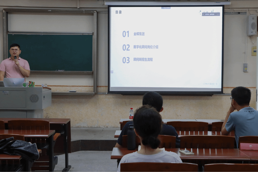 为拓展yl88858永利集团应届毕业生更多实习机会和就业渠道,9月14日下午,我校经济与管理学院于莞城校区3309顺利召开“金蝶财务数字化顾问卓越班”宣讲会,经济与管理学院副院长黎伟,梁美仪,黄润樑老师出席本次宣讲会,金蝶国际软件集团有限公司负责人老师张锦涛主持本次会议。