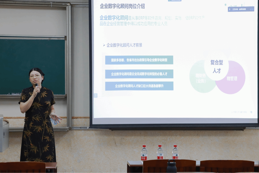 随后,梁美仪老师上台发言,她表示,大四学子在选择实习就业过程中要充分认识到实习的重要性和必要性,提前储备丰富的知识,在实习单位找准自己的定位。