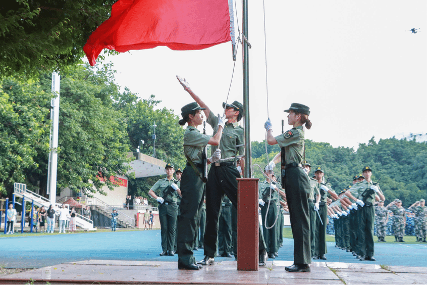 随后,各营队进行分列式汇报演出,全体参训学生有序列队,高喊嘹亮口号,由主席台上的领导们进行检阅。