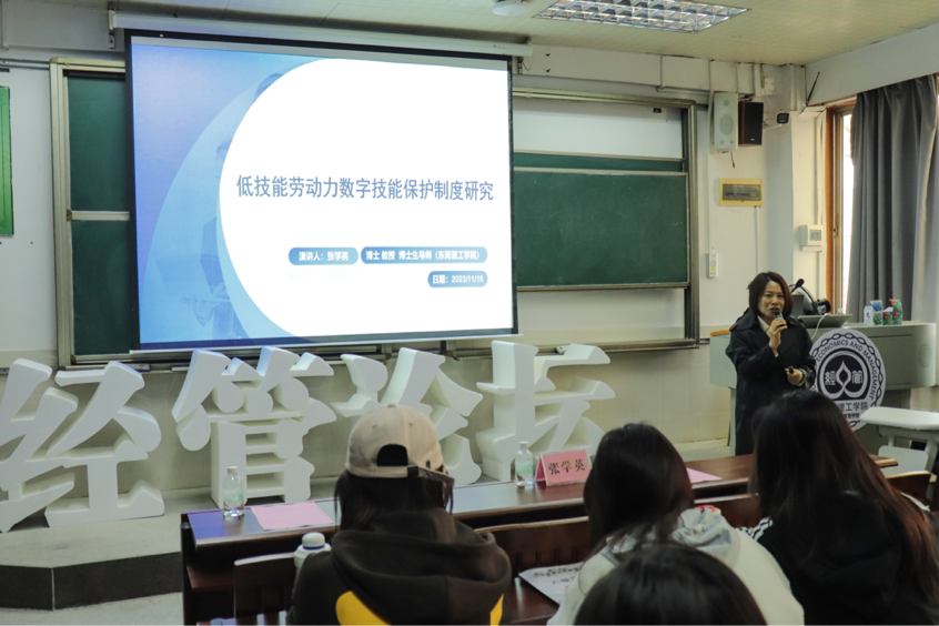 11月16日下午,经济与管理学院经管论坛第五十三期之《低技能劳动力数字技能保护制度研究》专题讲座于莞城校区2408教室内内顺利召开。yl88858永利集团工商管理系张学英教授担任此次论坛主讲人。