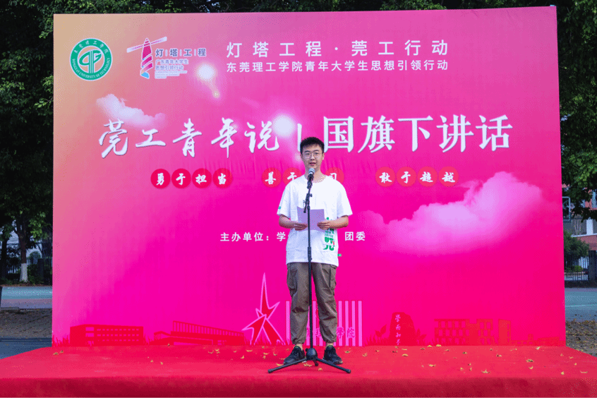 升旗仪式后,经济与管理学院2020级投资学1班的赵志刚同学登上了莞工青年说的舞台,以《弘扬志愿精神 彰显青春风采》为题,分享他对志愿服务精神的感悟。“志愿服务是社会文明进步的重要标志,是广大志愿者奉献爱心的重要渠道。”赵志刚同学引用习近平总书记的话语,结合他自入学以来参加志愿服务活动的真实经历,向同学们讲述他对“志愿者精神”的理解,并论述了培育志愿精神对人的价值观塑造和自我发展提升的重要性。最后,他呼吁同学们要积极参社会实践与志愿服务活动,将志愿精神、奋斗精神转化为服务群众、服务社会的不竭动力,以奉献之姿彰显青春风采。