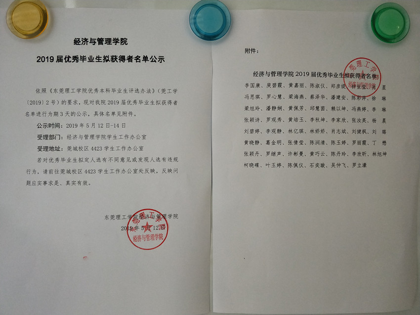 经济与管理学院2019届优秀毕业生拟获奖者名单公示
