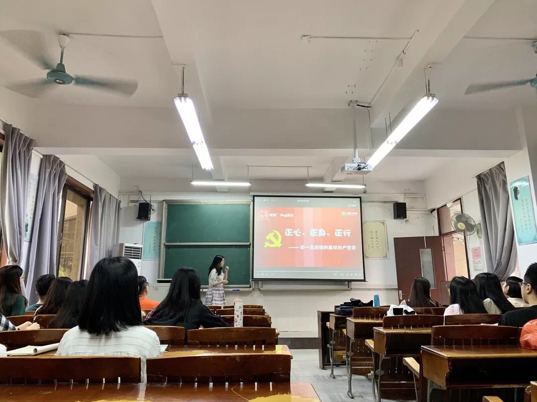 4月18日下午,经济与管理学院分党校第五期预备党员培训班第二讲于莞城校区2201教室顺利举行,学生党支部书记邓毅青担任主讲人,23名预备党员参加了培训课。