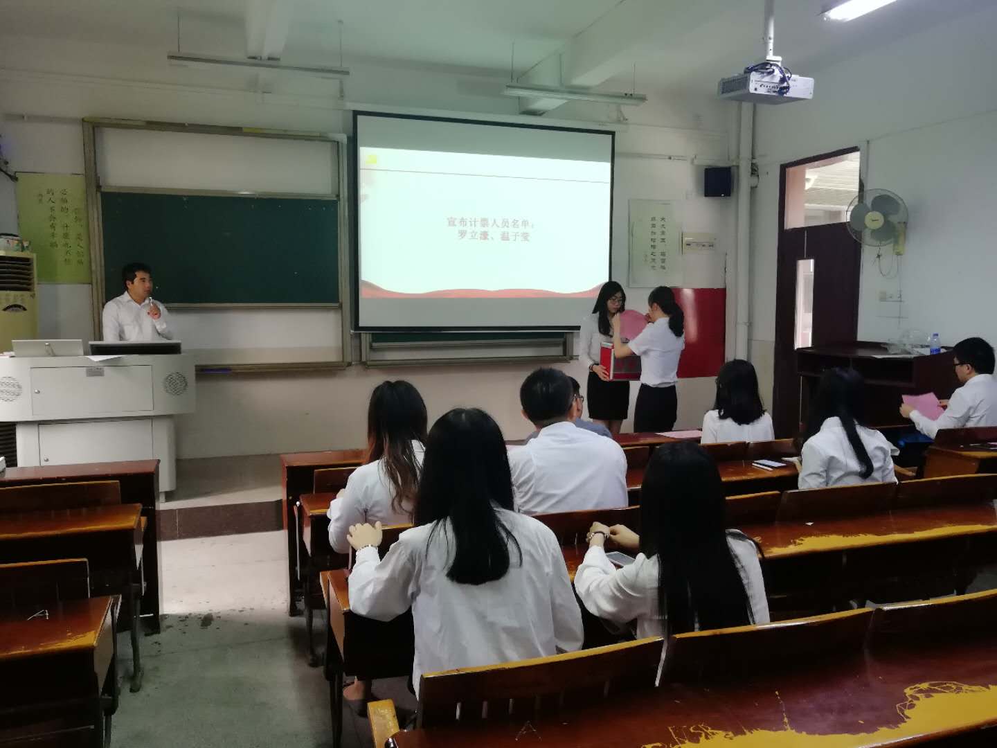 4月25日,国际商管系学生党支部于莞城校区2211课室召开全体党员大会,选举新一届国际商管系支部委员。本次会议应出席正式党员11人,实际出席9人,超过应到会人数的五分之四,可以开会。