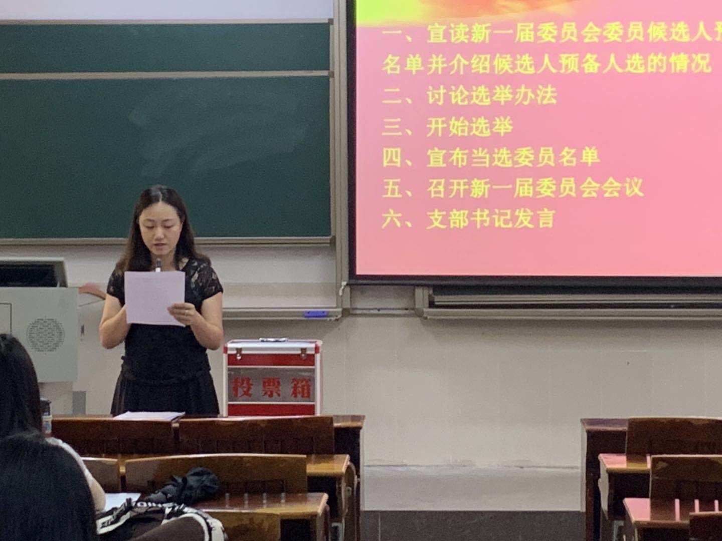 本次会议由财金系学生支部临时负责人莫晓红同志主持,大会采用无记名投票方式,差额选举出莫晓红、刘文渊和周兆鸿三位同志为新一届支部委员会委员。