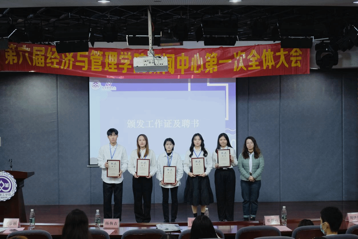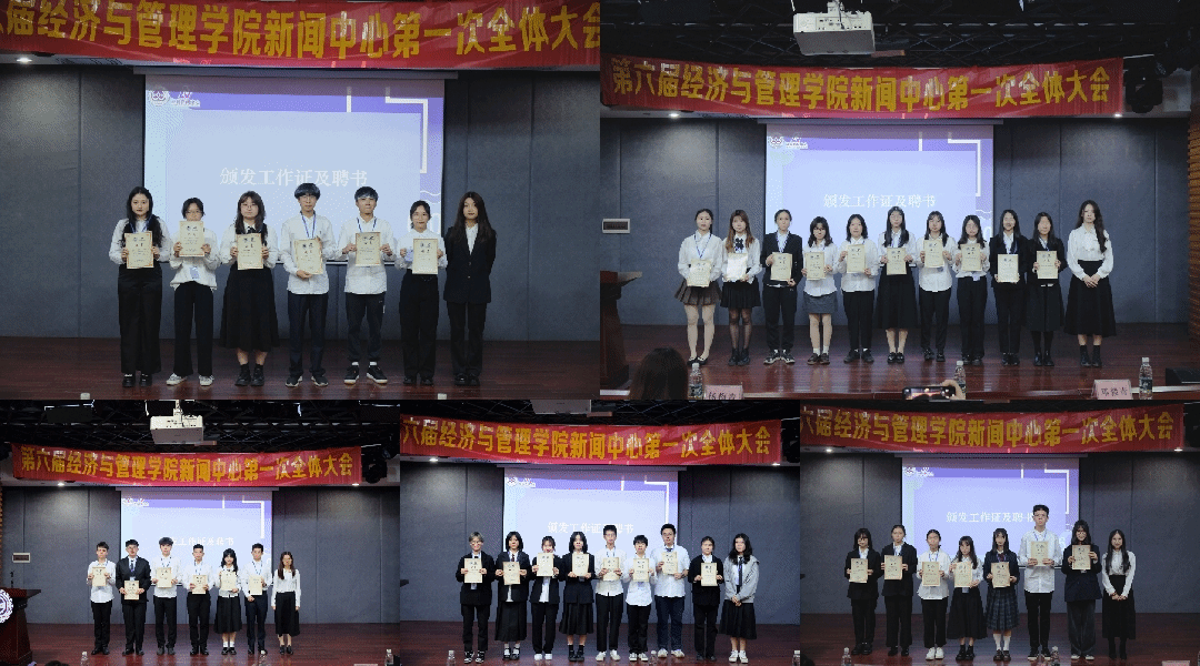 大会期间,黄湘老师为指导老师和第六届新闻中心委员颁发聘书,经管新闻中心各部长为新任干事发戴工作证,进一步端正了态度、明确了责任。