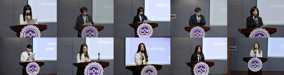 新闻中心主任刘明鑫表示希望新一届新闻中心成员能够带着热情、责任和端正的学习态度投入到今后的工作中。秘书长叶嘉颖通过分享自己在新闻中心任职两年的经历,期待干事们在老师和部长的带领下有更好的成长与突破。随后,部长及干事代表们进行发言,并纷纷表示将会更好地为经管学院宣传工作贡献自己的力量。