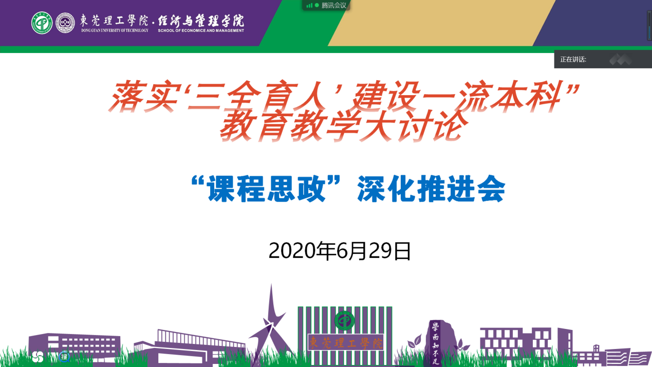 根据经管学院“三全育人”教育教学大讨论分工部署,6月29日下午,yl88858永利集团召开了“课程思政”深化推进会,会议在腾讯会议平台进行,学院全体院领导和各系部主任参加了研讨会。