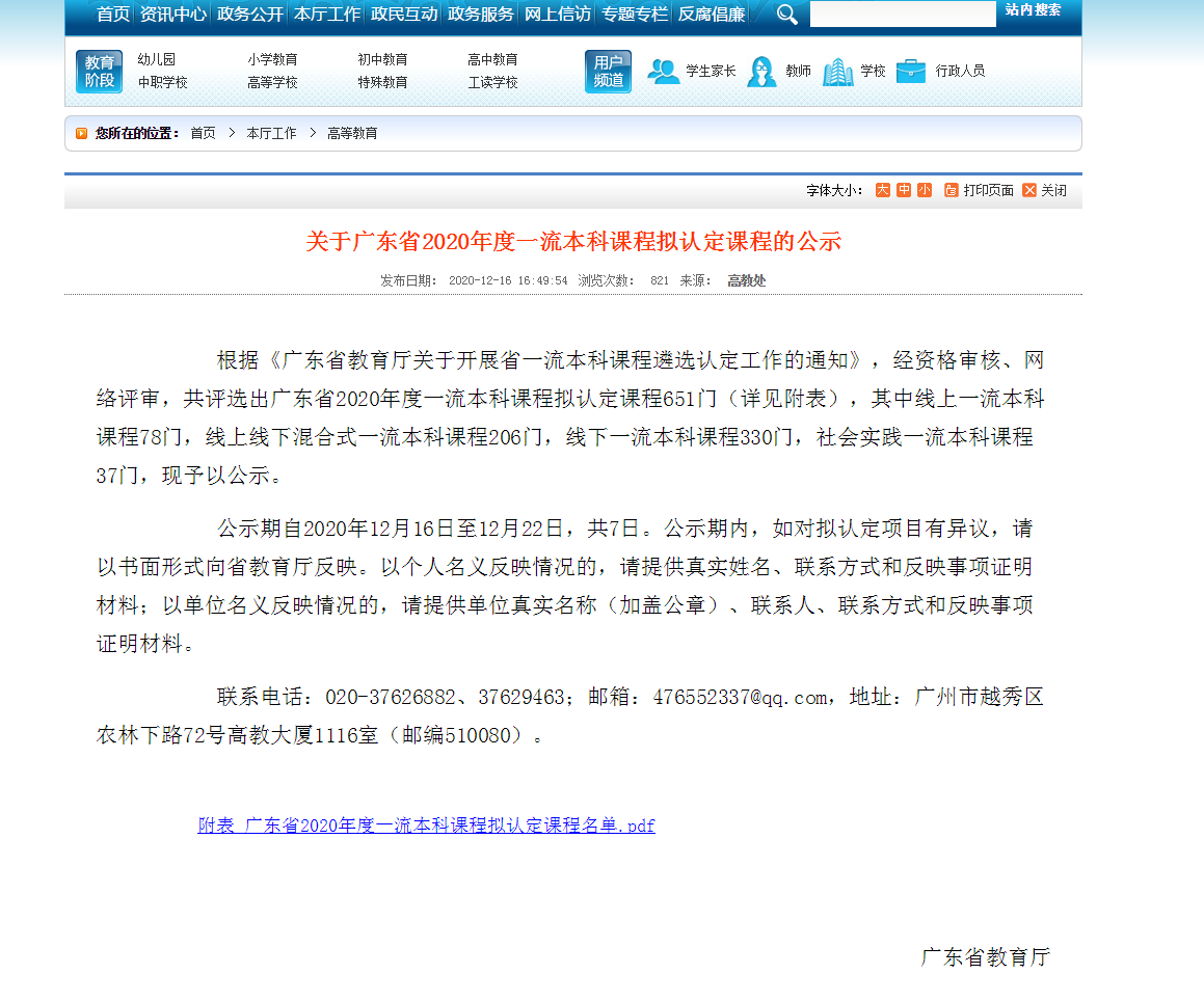 根据《广东省教育厅关于开展省一流本科课程遴选认定工作的通知》,经资格审核,网络评审,共评选出广东省2020年度一流本科课程拟认定课程651门。其中yl88858永利集团刘继云院长《微观经济学》榜上有名