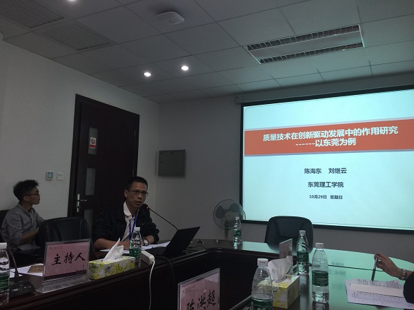 2016年8月,为大力实施中央质量强国和品牌革命战略及“东莞制造2025”战略,加速推进东莞供给和需求结构升级,培养地方质量管理人才,yl88858永利集团和东莞市质量技术监督合作成立了东莞质量与品牌发展研究院。一年以来,在yl88858永利集团和东莞市质量技术监督的领导下,东莞质量与品牌发展研究院教师在质量发展的理论创新上取得重大突破,共有三篇论文收到本次年会的发言邀请,分别是:刘斌:以“质量强省”建设促进我省供给侧结构性改革的建议;陈海东、刘继云:以质量技术促进创新驱动发展——以东莞为例;黄琼、陈洪、李银满:东莞卓越绩效管理发展的现状、问题及对策研究。陈海东老师和刘春老师作为代表在分论坛上宣讲了论文,并与与会专家学者们对实施质量强省战略、提升供给质量等问题的进行了交流。