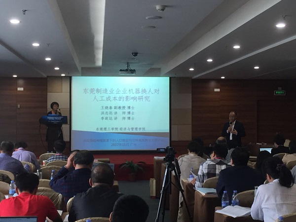 经管学院教师王晓春、洪志远、李政达博士合著的论文《东莞制造业企业机器换人对人工成本的影响研究—以申请机器换人资助企业为例》被大会录用,并获准在会议上宣读。王晓春博士于会中宣读了三人合著的论文,并与相关领域的学者进行了较为深入的问答与交流,为研究中存在的短版提出了良好的建议,并为未来的研究开展了宽阔的思路与可能性。