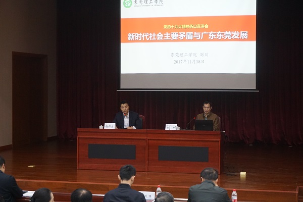 2017年11月21日上午,在茶山镇领导干部深入学习贯彻党的十九大精神专题培训班上,经济与管理学院刘川教授为茶山镇干部作了一场名为《新时代社会主要矛盾与广东东莞经济发展》的主题报告。