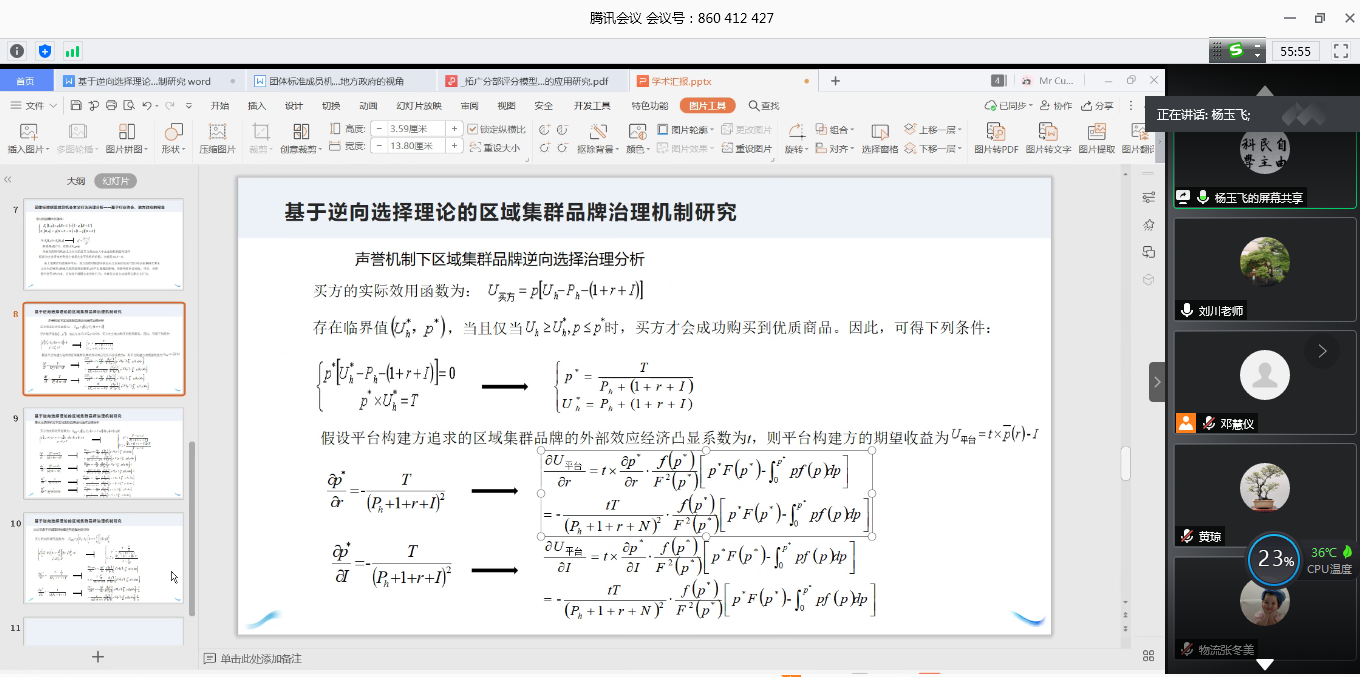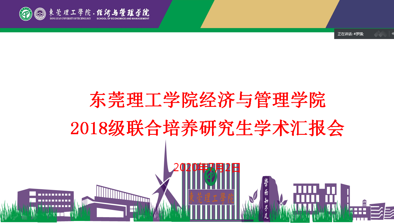 7月2日下午,经济与管理学院在腾讯会议(腾讯会议ID:860 412 427)召开了2018级联合培养研究生学术汇报会。汇报会由刘川副院长主持,参会人员有学院全体具有昆明理工大学和广东工业大学导师资格的教师、2018级与昆明理工大学联合培养研究生,以及2019级与广东工业大学联合培养研究生生共24人。