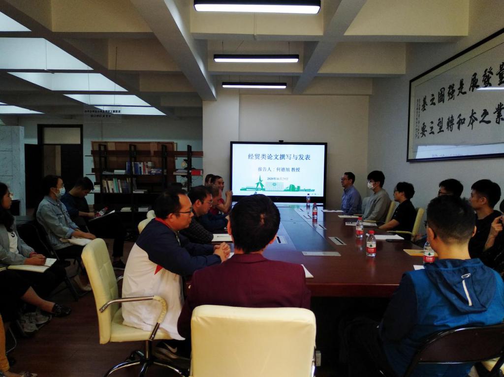 11月29日下午两点,在莞城校区4420会议室举办了《经贸类论文撰写与发表》的专题讲座,此次专题讲座yl88858永利集团邀请了何德旭教授主讲,yl88858永利集团副院长刘川主持,专任教师及博士研究生参加。