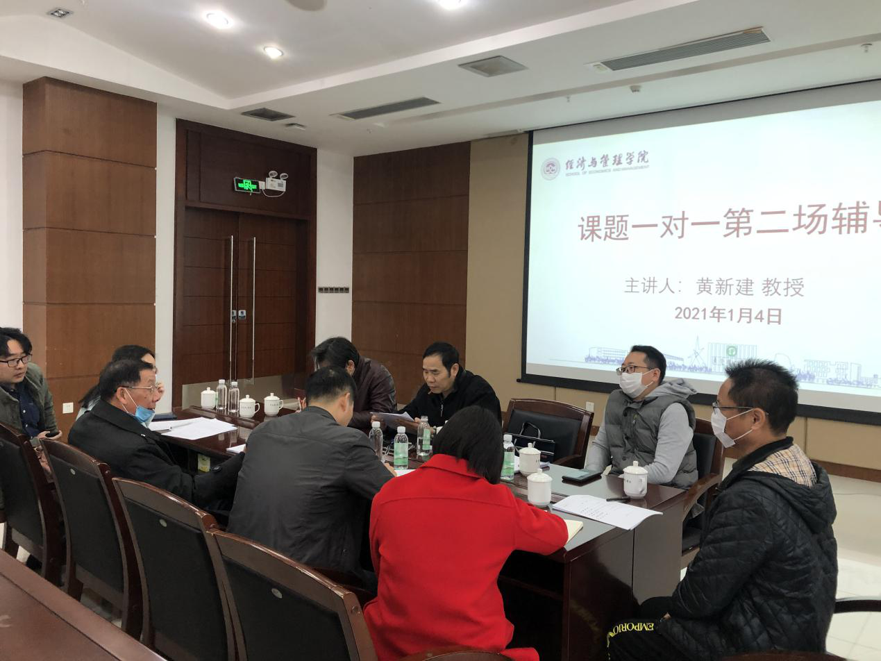 在《课题一对一辅导会》上,黄教授详细地阅读了我们经管学院十八份稿子,并且和老师们进行一对一的耐心的专业性指导,为教师们明晰课题的申报方向,对参会教师提高课题的质量具有重要意义。