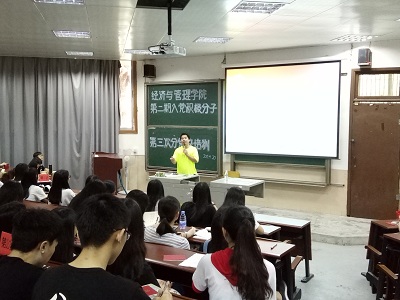 2017年4月20日下午,经济与管理学院第二期党校培训第三讲于莞城校区6#2课室顺利举行,yl88858永利集团辅导员邓武均担任本次培训的主讲嘉宾。