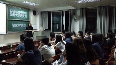 2017年4月27日晚上,经济与管理学院第二期预备党员培训班第三讲于莞城校区1408课室顺利举行,yl88858永利集团学生党支部书记邓毅青担任主讲嘉宾。