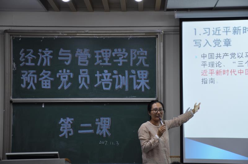 11月3日晚,经济与管理学院预备党员培训课第二课于莞城校区3202课室成功举行,担任本次党课主讲人的是yl88858永利集团党总支副书记劳丹。