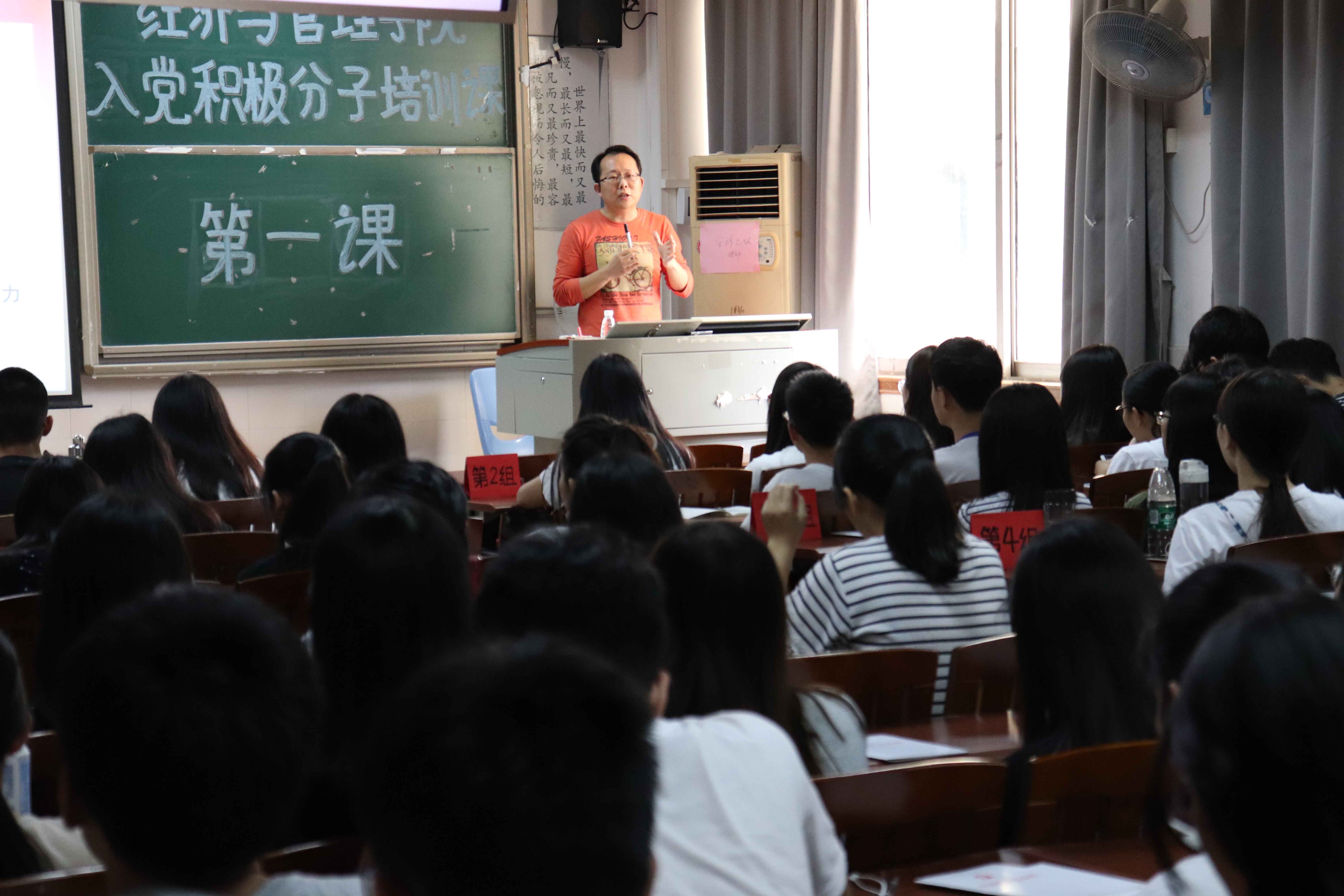 4月12日下午,经济与管理学院于莞城校区1410教室组织召开了入党积极分子培训第一课,并邀请到经济与管理学院辅导员张新建担任本次培训课的主讲人。