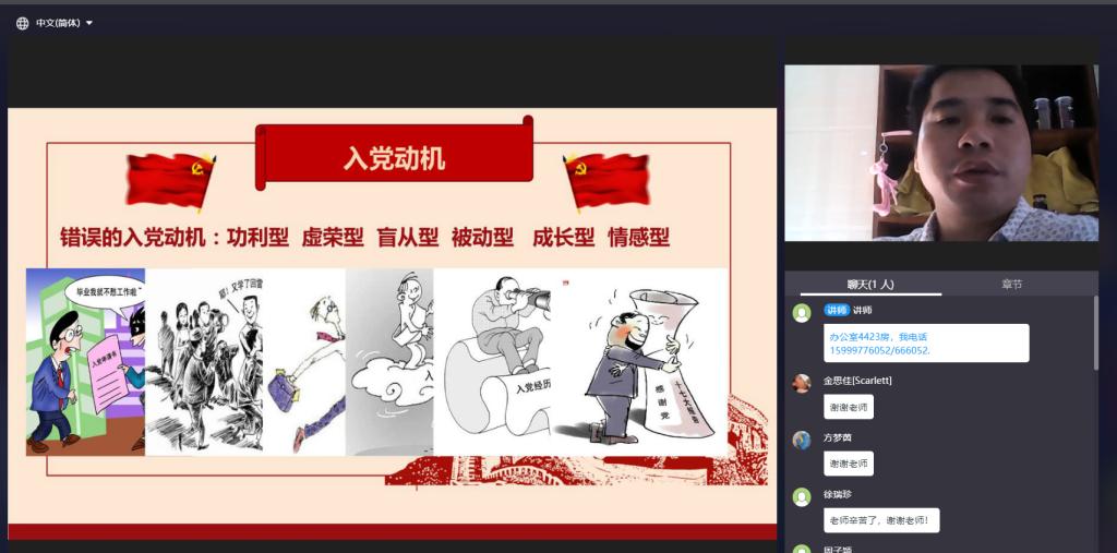 4月30日下午,经济与管理学院第8期分党校培训课第四讲于优学院平台直播,经管学院学工办班主任邓武均老师担任主讲人,面向学院第8期入党积极分子授课。
