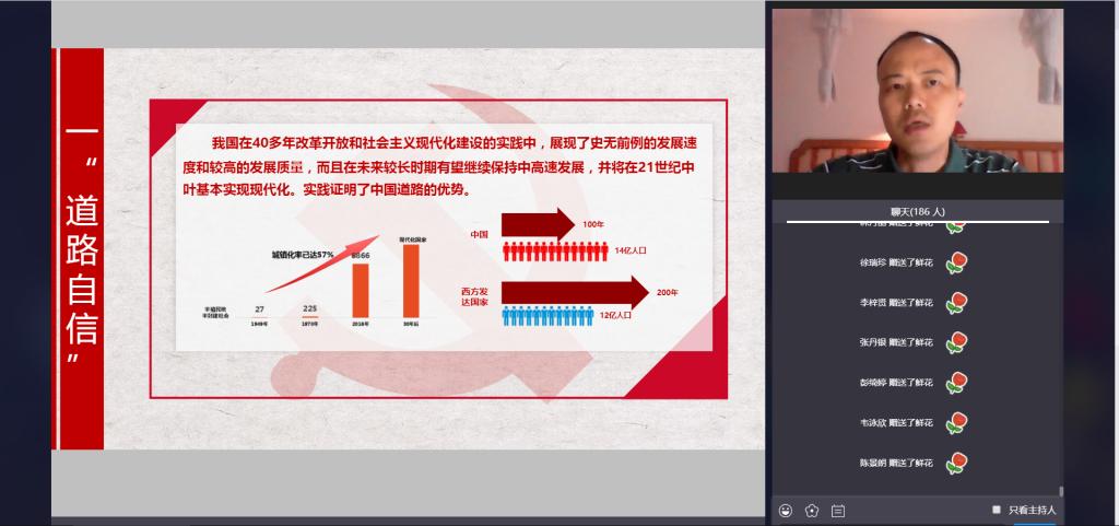 本次党课增强了同学们对我国道路、理论、制度、文化的自信,引发同学们对未来发展的思考,激励同学们奋发向上,为国家发展贡献力量。