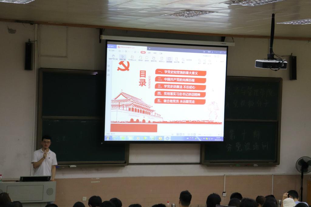 2021年5月13日下午,经济与管理学院第十期分党课第五讲于莞城校区5#1阶梯教室顺利举行。本次分党课由经济与管理学院工商管理系学生第一党支部书记刘文渊担任主讲人,面向经济与管理学院第十期入党积极分子授课。