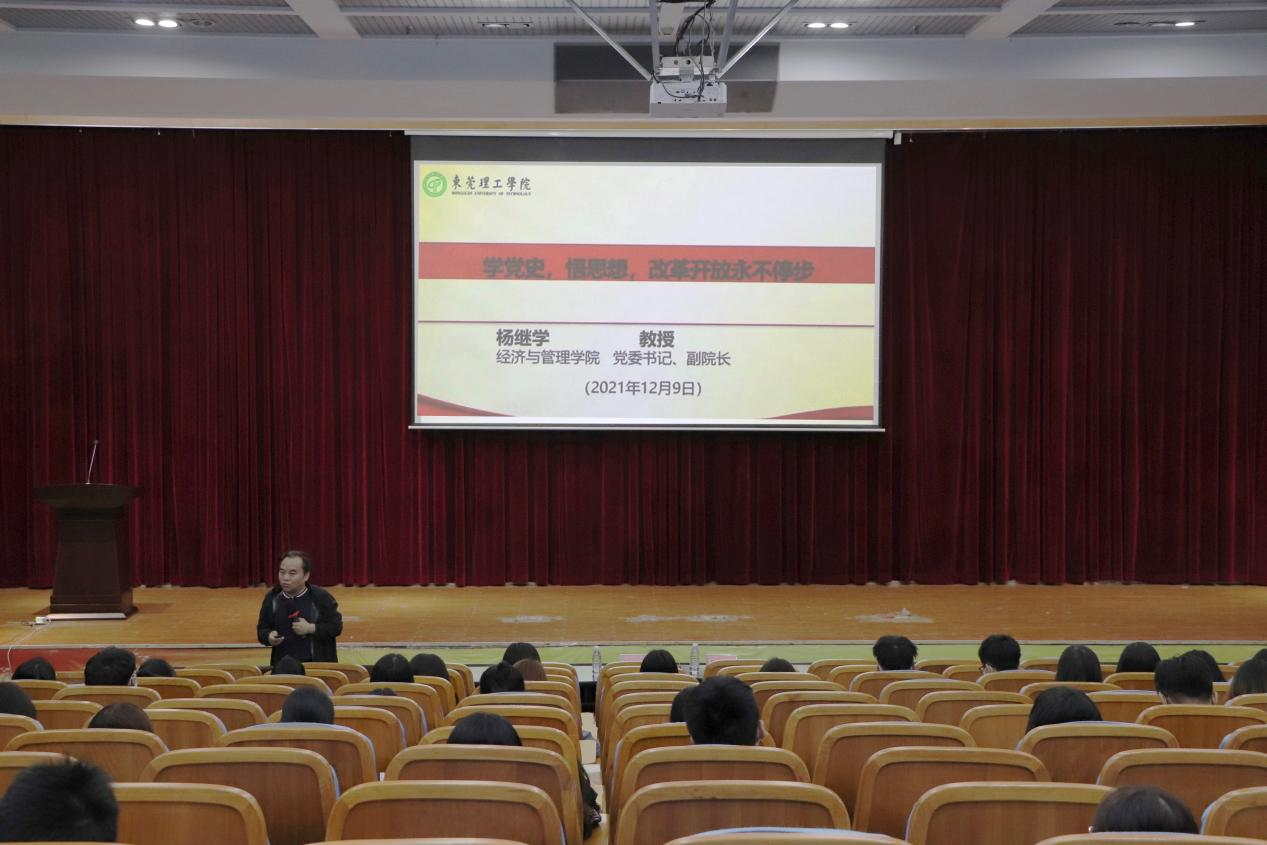 2021年12月9日,经济与管理学院第十一期入党积极分子党课培训在莞城校区学术报告厅顺利开展,经济与管理学院党委书记杨继学教授担任本次党课主讲人。