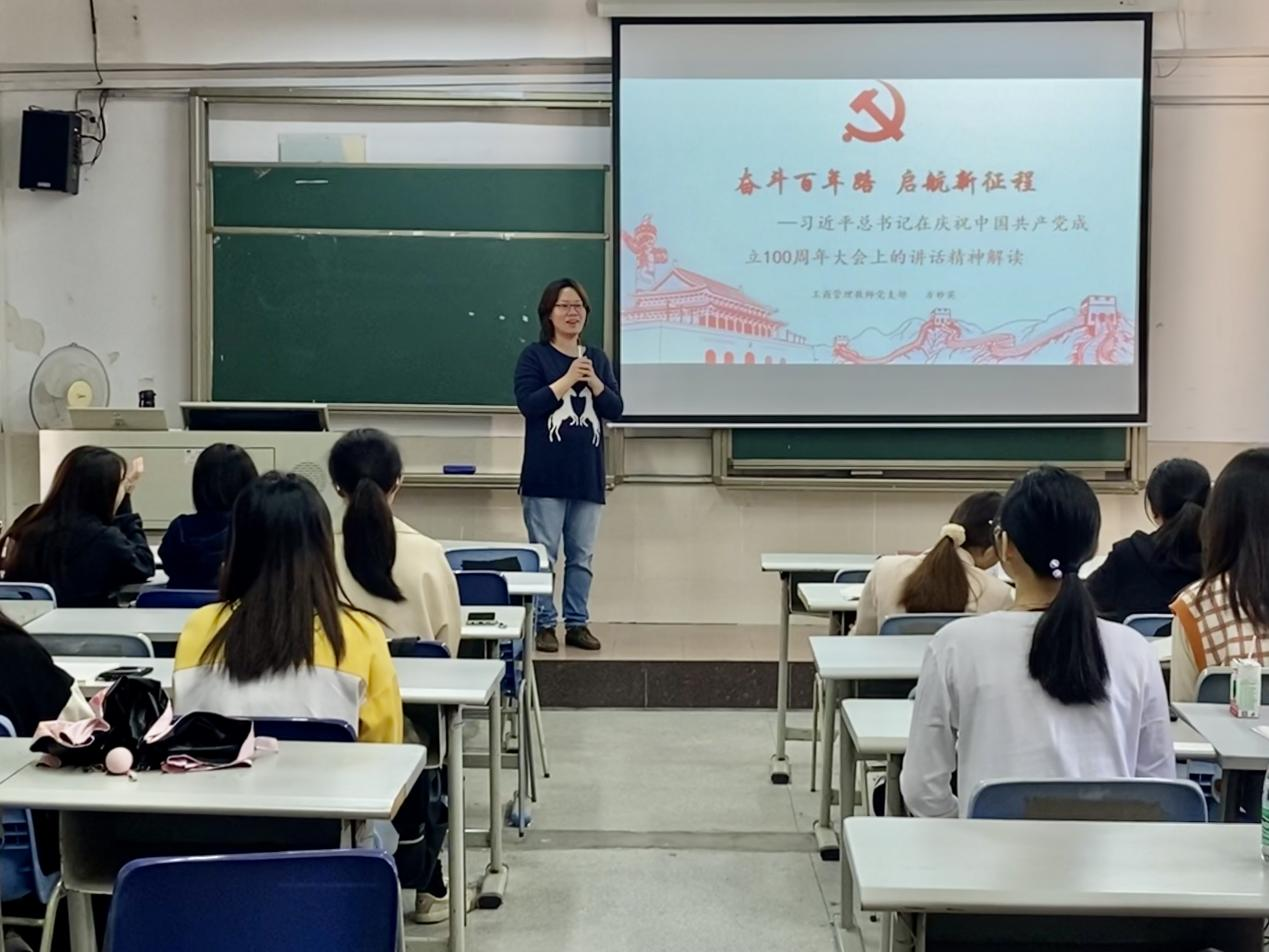 2021年12月9日,2019级人力资源管理专业于6305课室开展了“奋斗百年路 启航新征程”主题党课。本次党课由工商管理教师党支部书记方妙英担任主讲人,2019级人力资源管理专业学生参加了学习。