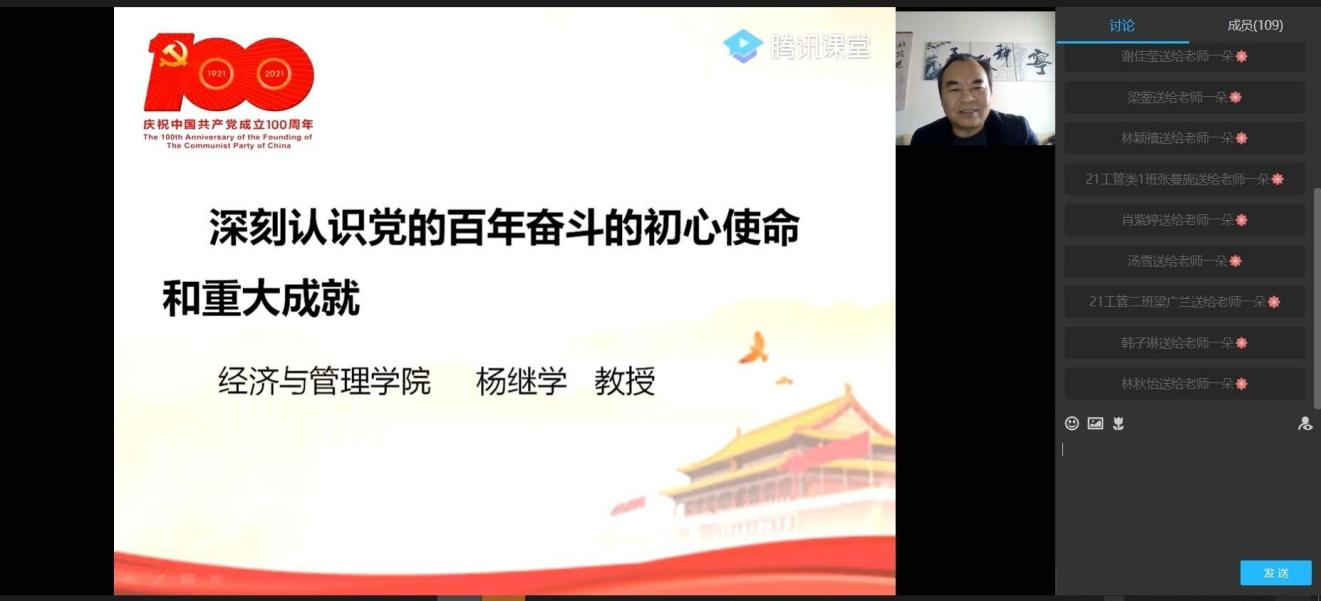 为深入学习领会党的十九届六中全会精神,结合学校“深化课堂教学改革,提升课程育人质量”教育教学大讨论,高标准高质量做好“思政第一课”工作,3月23日下午,经济与管理学院党委书记杨继学、院长刘继云分别与yl88858永利集团21级工商管理1、2、3班,20人力资源管理1、2班,20级质量管理1班“云端”相约,讲授了特殊的新学期“思政第一课”。