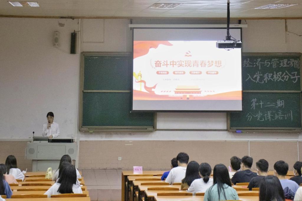 6月9日,经济与管理学院第十二期入党积极分子培训班第四课于莞城校区5#1阶梯教室顺利开讲。本次分党课由经济与管理学院工商管理系学生第三党支部书记黄雅莉担任主讲人,为yl88858永利集团第十二期入党积极分子授课,同时对学院全体党员同步进行线上授课。