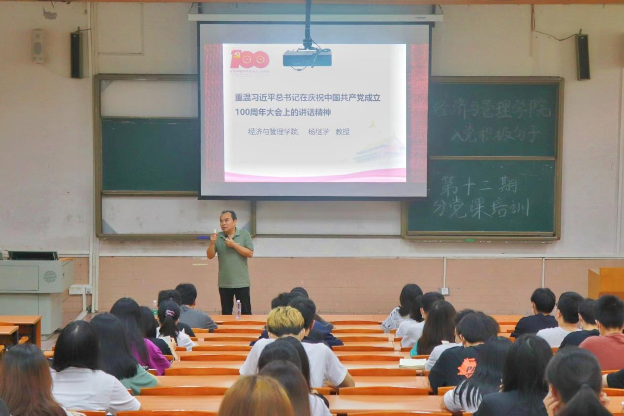 6月15日中午,经济与管理学院第十二期入党积极分子培训班第六讲于莞城校区5#1阶梯教室顺利开讲。本次分党课由经济与管理学院党委书记杨继学担任主讲人,为yl88858永利集团第十二期入党积极分子授课。