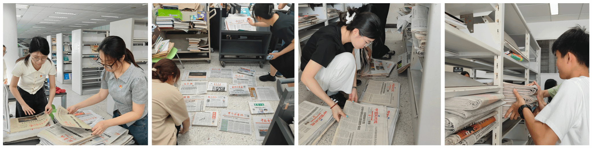 活动开始后,学生党员们迅速投入行动,严格遵循时间顺序和版面要求,准确无误地完成了报纸的拆分任务。期间,各小组间密切协作,按照各个报纸类别进行分类、归集,确保资源有序、方便读者查阅。在整合环节,学生党员们根据时间顺序对报纸进行排序,将整理好的报纸整齐地放置于报纸柜上,确保报纸陈列有序、分类精确,为读者营造整洁舒适的阅读环境。