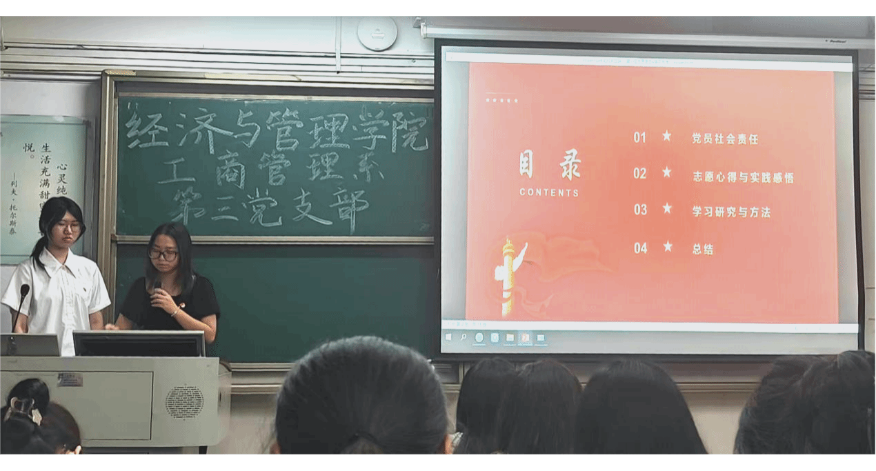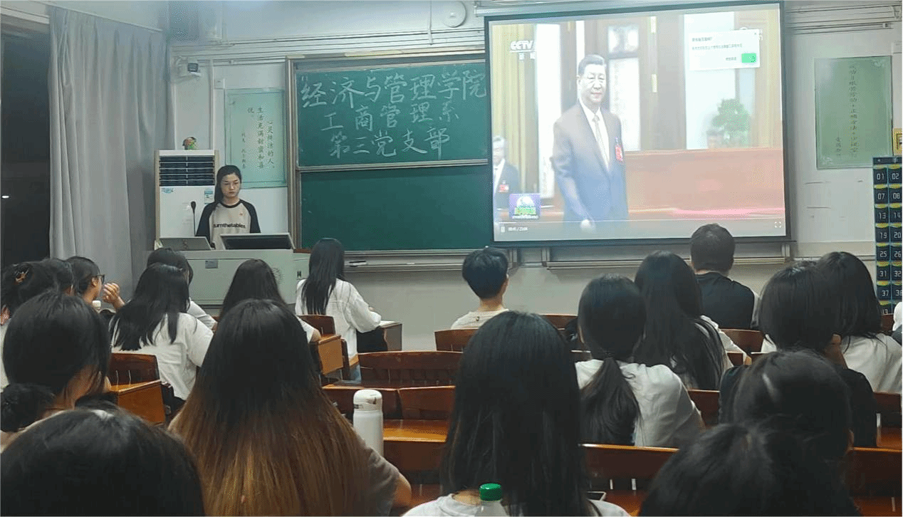 9月18日,经管学院工商管理系学生第三党支部于莞城校区2202教室开展“党旗引领,征程新启”主题党日。本次活动旨在通过理论学习、朋辈指引等方式,发挥党员先锋模范作用,加强高年级党员与低年级入党积极分子的交流。
