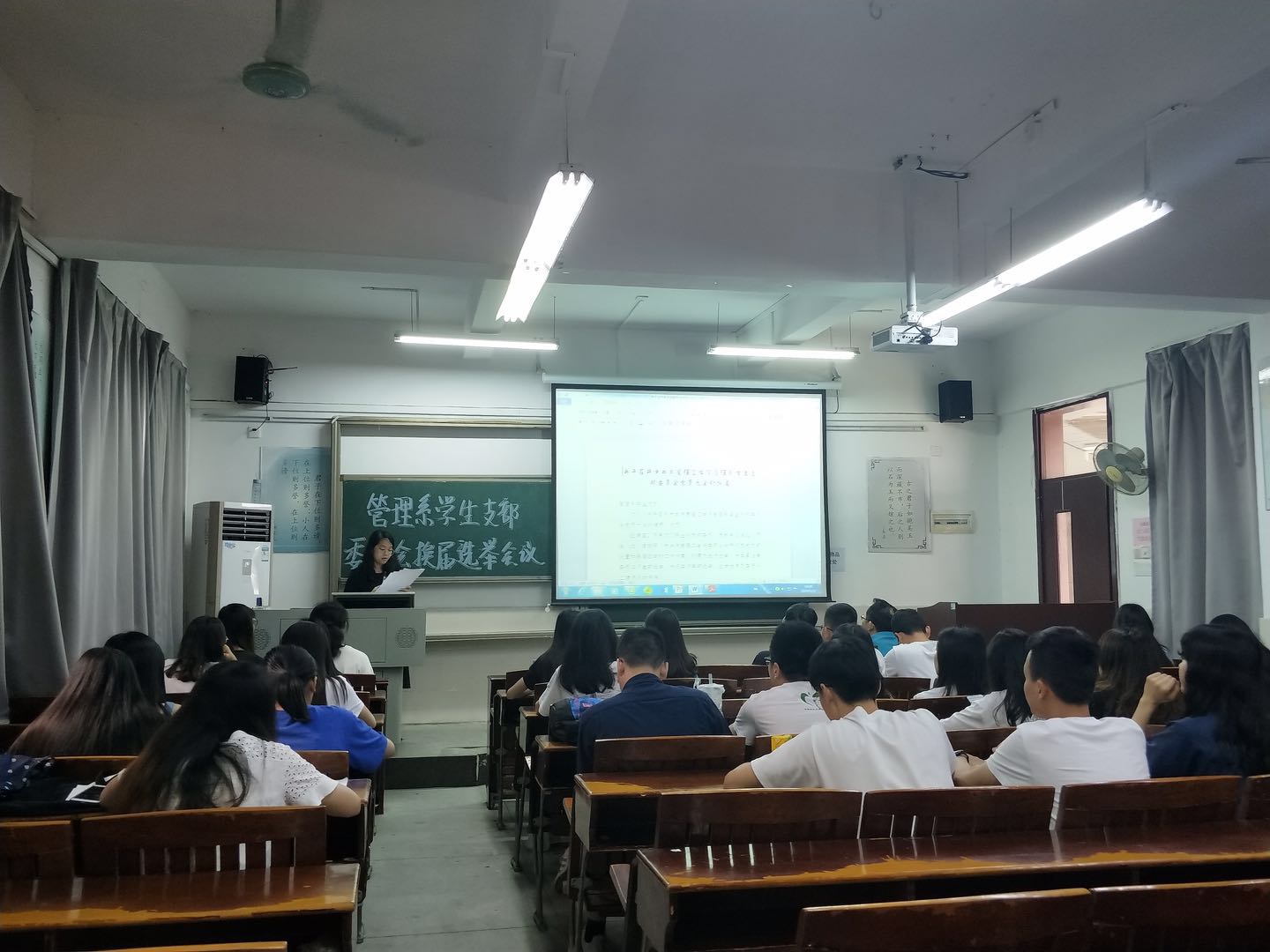 2019年4月25日下午,经济与管理学院管理系学生支部于莞城校区2208课室顺利召开了支部委员会党员大会进行换届选举,经济与管理学院党总支副书记黄湘、管理系学生支部临时负责人邓毅青、辅导员张新建以及全体学生党员出席了现场。