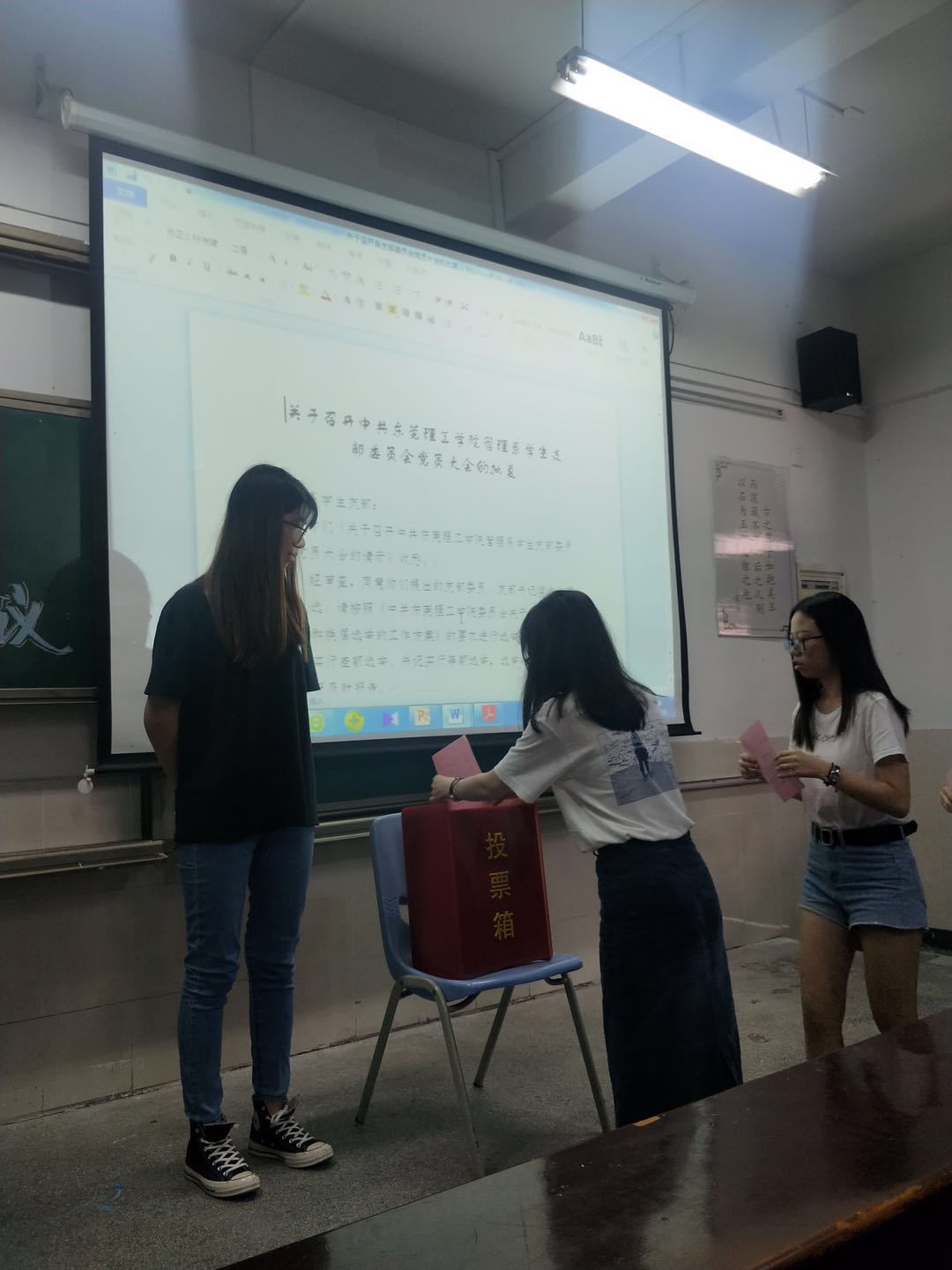 会议由管理系学生支部临时负责人邓毅青同志主持,大会采用无记名投票方式和差额选举方法进行选举,候选人邓毅青同志以18票,伍境珠同志以17票,覃东宝同志以15票当选为新一届支部委员会委员。