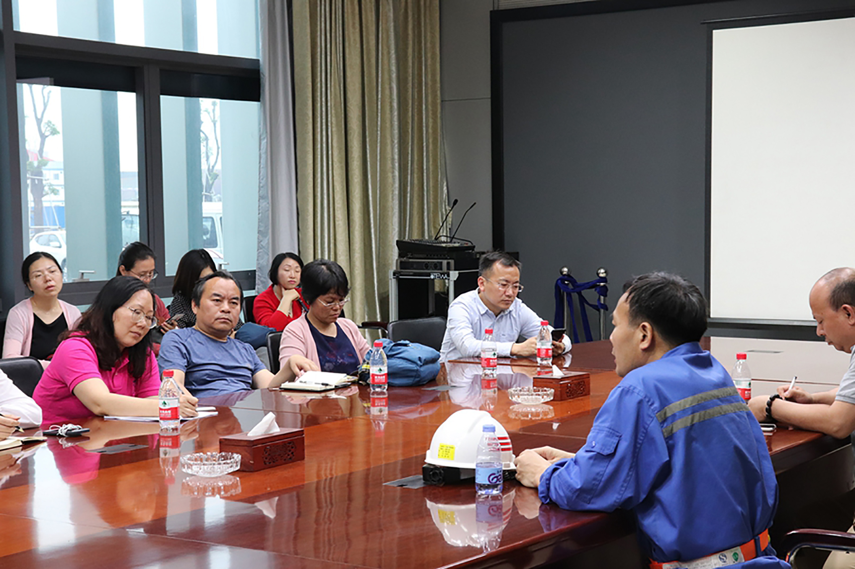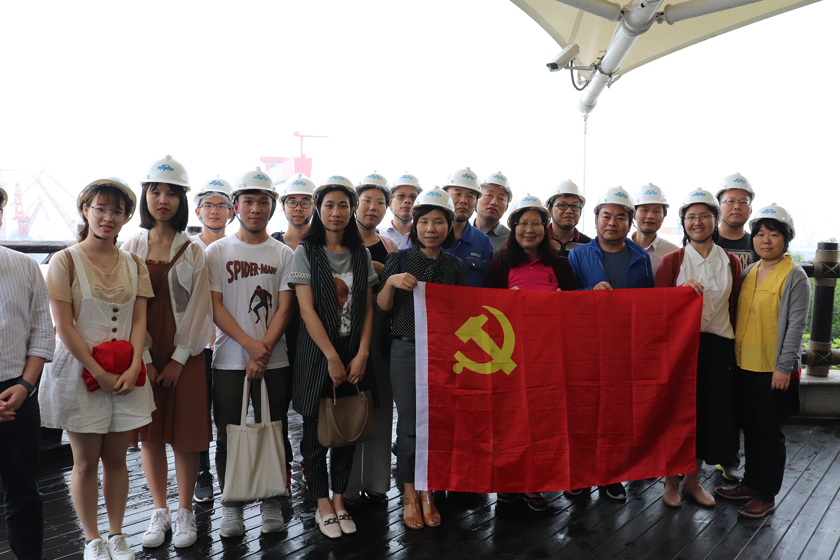 师生党员在广船国际集团南沙厂区参观学习过程中,在相关负责人的带领下详细了解了广船国际的创建情况、发展历史、设备情况、行业地位以及集团的明星产品。随后参观了造船厂的区域布局、船舶的初加工流程以及船舶的组装焊接流程。