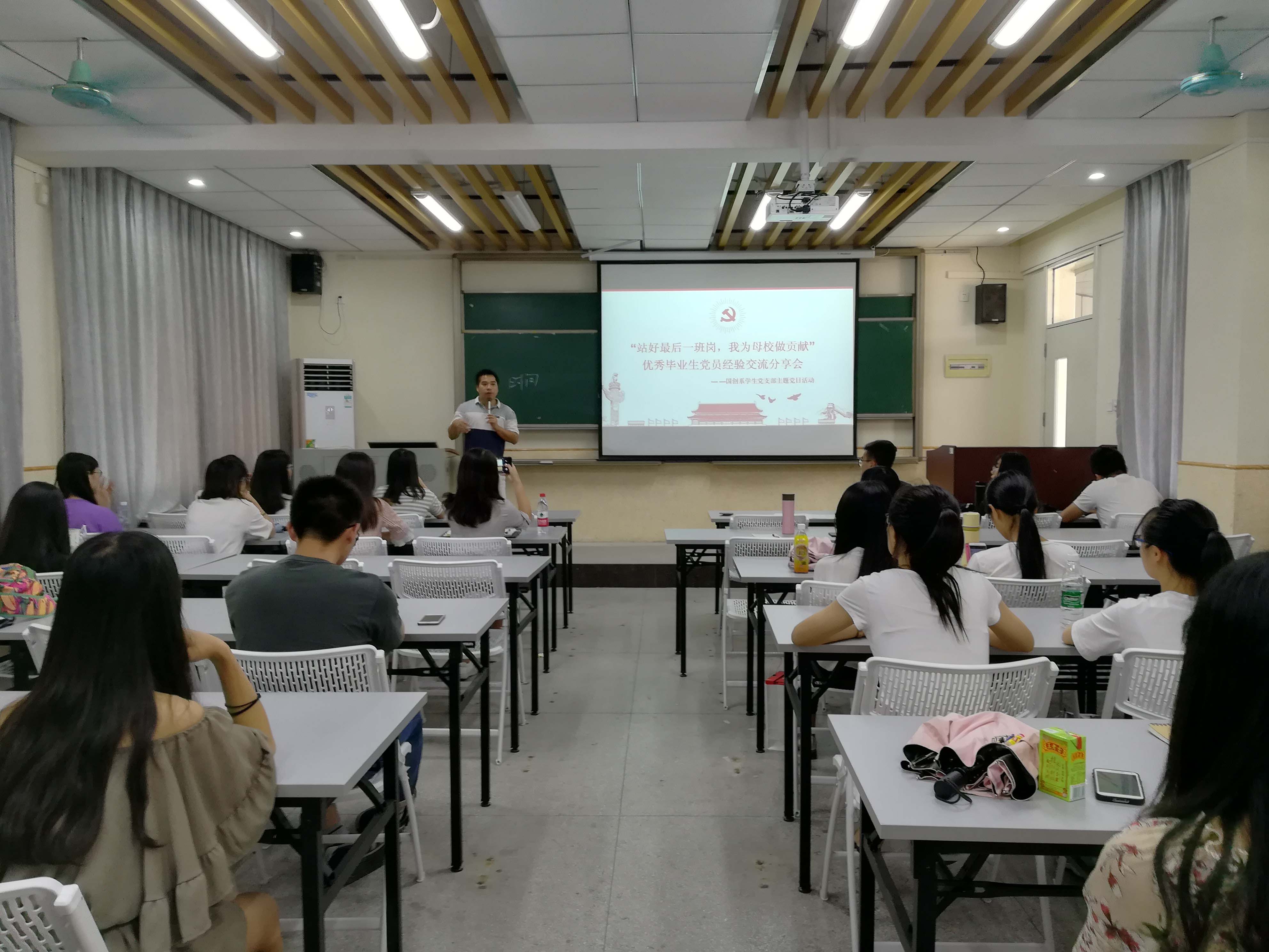 6月3日,国创系学生党支部于莞城校区3303开展了主题党日活动——“站好最后一班岗,我为母校做贡献”优秀毕业生党员经验交流分享会。党支部书记邓武均为本次党日活动定调,邀请优秀毕业生党员分享她们从一名普通同学成长为中共党员的经验与收获,同时鼓励其他同学学习其身上可贵的精神品质。