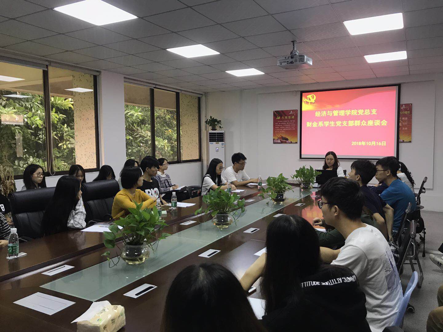 10月16日下午,经济与管理学院党总支财金系学生党支部于3307党员活动室顺利开展群众座谈会。