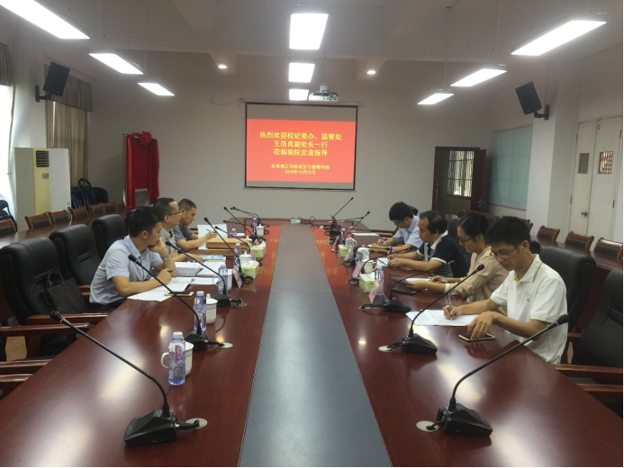 10月22日,校纪委办、监察处副处长王浩良一行莅临经济与管理学院308会议室,调研纪律教育和廉政风险防控工作开展情况。经济与管理学院党总支书记杨继学、副书记劳丹,组织员梁建川,实验室主任黄润樑参加了会议。