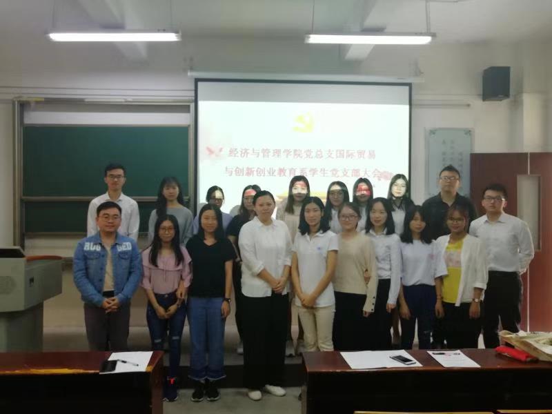 10月19日,国际贸易与创新创业教育系学生党支部(简称国创系学生党支部)于莞城校区2209课室召开国创系学生党支部大会,讨论接收预备党员及预备党员转正的问题。参加本次会议的有国创系学生党支部临时负责人叶惠如同志、经济与管理学院辅导员熊涛同志、张颖君同志以及全体学生党员。本次会议应出席党员 16人,其中应出席的中共正式党员11人。
