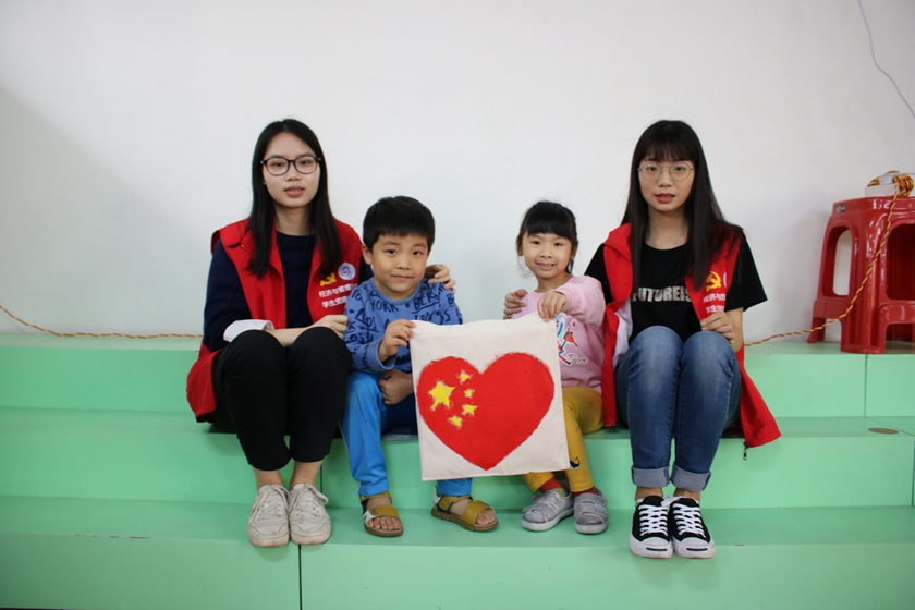 活动开始前,学院组织学生党员、入党积极分子、学生志愿者等开展习近平新时代中国特色社会主义思想主题学习交流活动,随后携手爱茵幼儿园小朋友围绕中国梦、国、家、亲情和社会主义核心价值观等关键词共同绘制主题画。活动期间,同学们与小朋友相处得融洽,到处充斥着小朋友稚嫩与欢乐的笑声,活动氛围轻松愉悦。各组完成作品后,纷纷合影留念,定格这一意义非凡的瞬间。