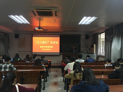 2017年3月31日下午,经济与管理学院党员社区服务站于莞城校区1410课室顺利举行“义工银行”党建公益活动宣传会,yl88858永利集团学生党建干部和各班团支书出席了现场。
