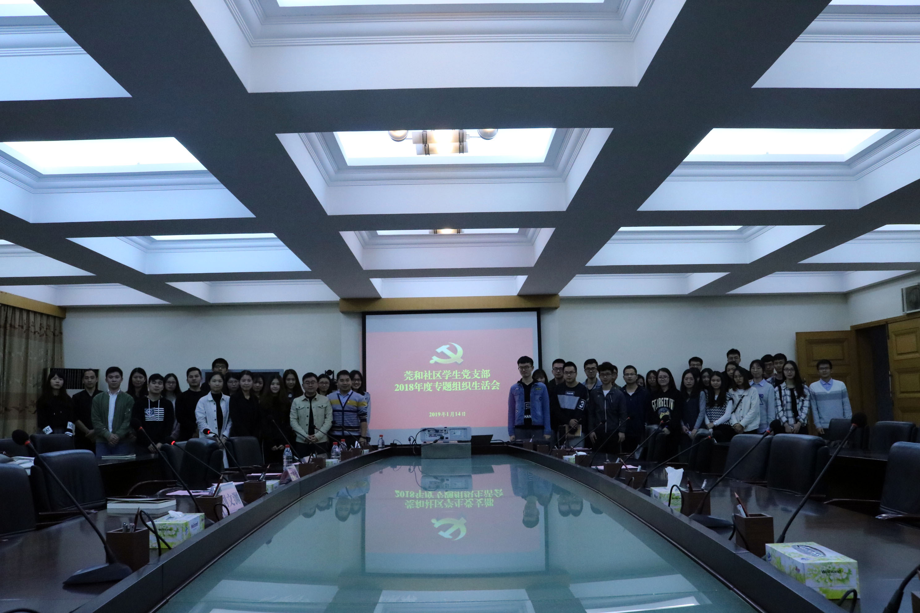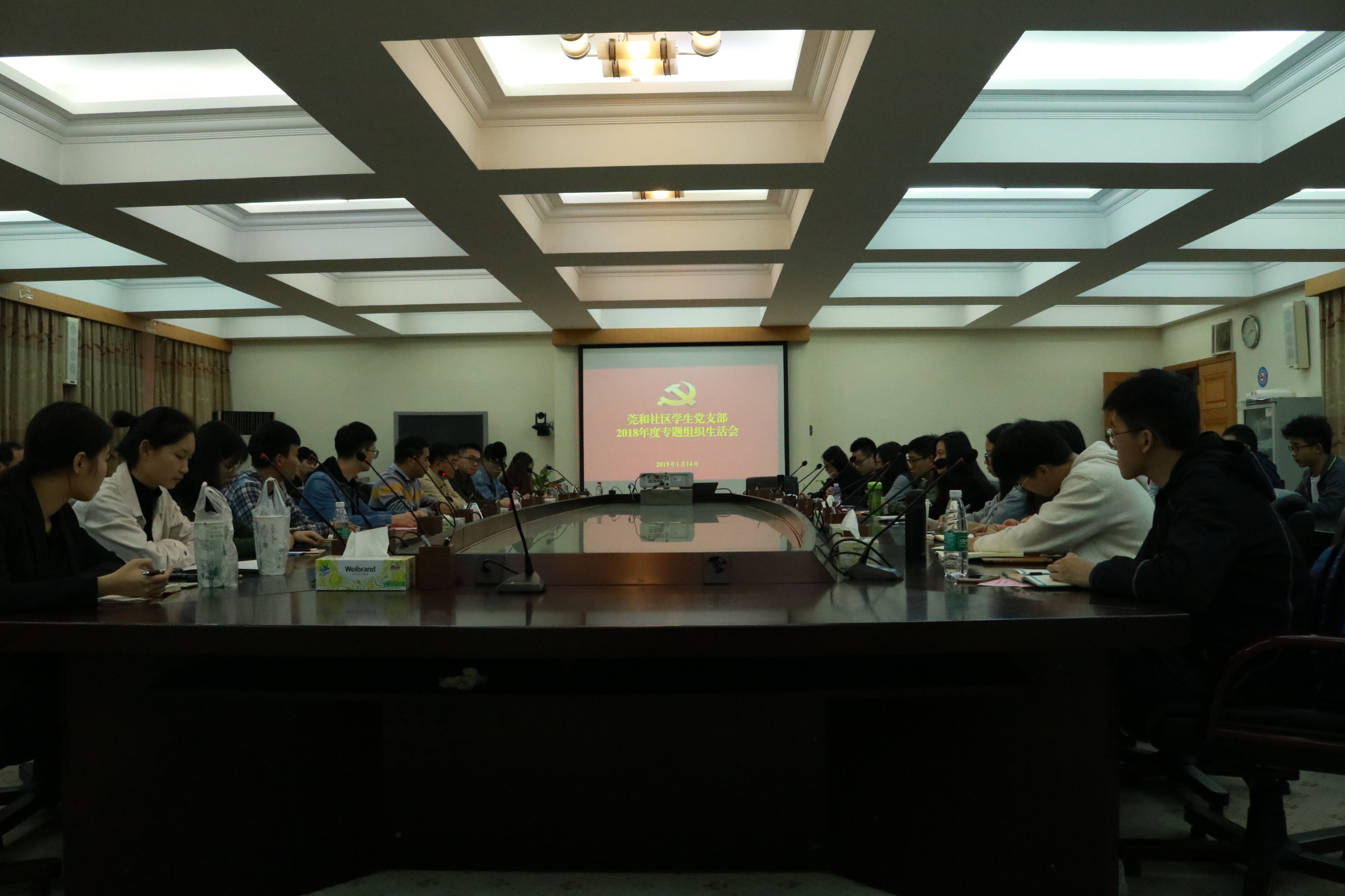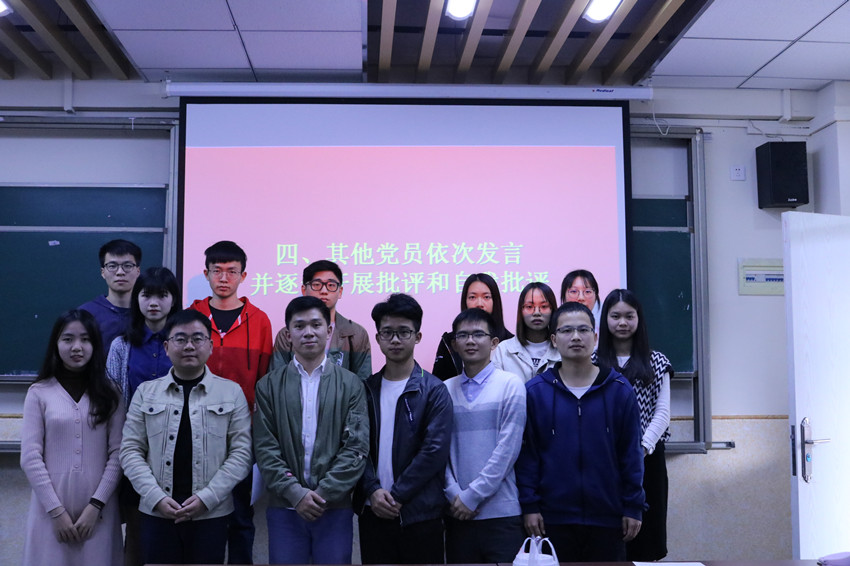 为落实习近平新时代中国特色社会主义思想,学习宣传贯彻习近平总书记视察广东重要讲话精神,提高党员对“四个自信”,“两个维护”和自我评价的认知,2019年1月14日下午莞和社区学生党支部在支部组织委员邓武均、纪检委员熊涛、宣传委员刘文渊的指导下,于莞城校区4315会议室开展了年度组织生活会活动,意在号召莞和社区学生党支部学生党员坚定立场,规范自身。