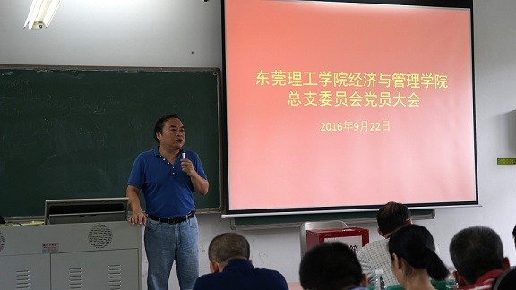 2016年9月22日下午,经济与管理学院于松山湖校区6E302顺利召开经济与管理学院总支委员会党员大会,经济与管理学院院长刘继云、党总支书记杨继学、副院长刘伟、党总支副书记劳丹及全体师生党员出席现场。