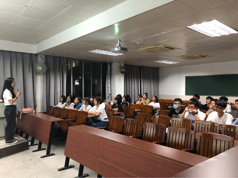 会议开始,凌榕同志通过学业、社团、生活三个方面分享了自己的经验。在学习方面,她说道:“要在有限的时间做对的事情。对于未知的新事物,不同的人有不同的应激反应,但不要畏难,遇到困难的时候,首先要调整心态,我们不能改变世界,但可以改变自己。”随后,凌榕同志还对考证、考研和留学进行了介绍,并强调了在大学生活中锻炼的作用。新生们耐心聆听,认真做好笔记。